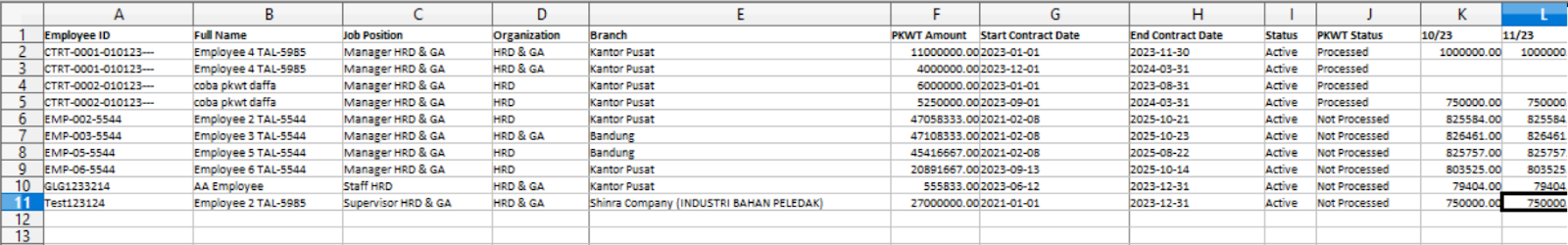 - Berikut contoh spreadsheet simulasi PKWT Compensation yang terunduh.