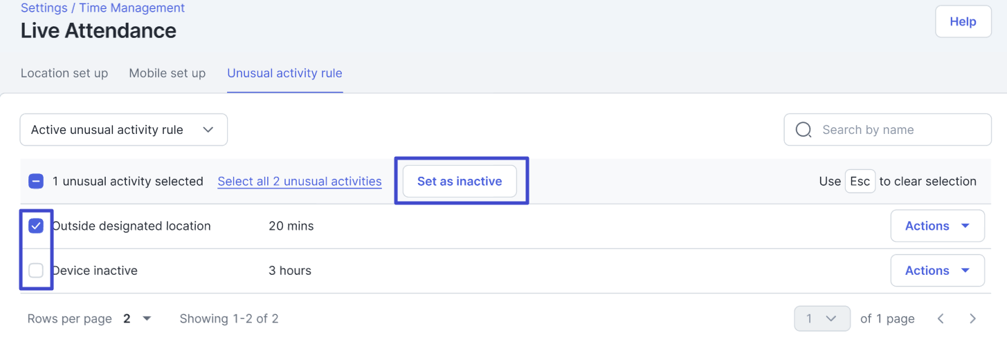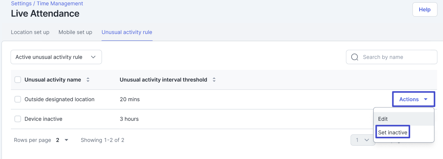 Aktivitas tersebut akan berstatus nonaktif, Anda dapat melihatnya dengan masuk ke halaman Inactive unusual activity rule.
