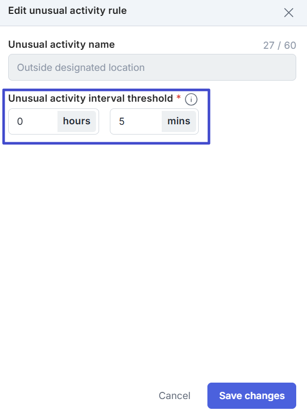Sebagai contoh, jika ambang batas ditetapkan 10 menit, maka pengguna/karyawan yang berada di luar radius selama 10 menit akan memicu aktivitas tidak biasa.