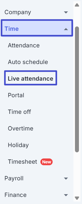 Lalu pilih Live attendance pada bagian submenu Time.