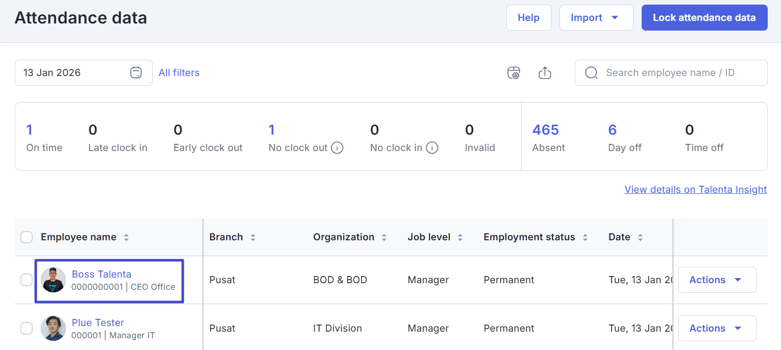 Karyawan yang sudah melakukan attendance baik melalui Talenta Mobile maupun web, dapat Anda lihat detail kehadirannya melalui menu Attendance Data. Berikut langkah-langkahnya.