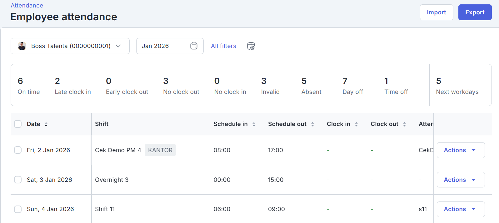 - Klik di sini untuk mempelajari cara mengimpor shift dan attendance karyawan.