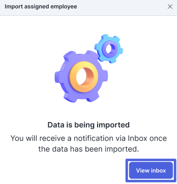 - Replacement: Untuk mengubah pengaturan lokasi karyawan saat ini ke yang baru. Maka, muncul pop-up berikut. Anda dapat klik “View Inbox” untuk melihat status impor Anda.