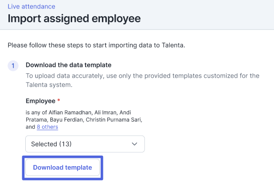 Pilih nama-nama karyawan yang akan Anda unduh template-nya dengan klik “Select employee”.
